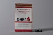 Abstract: Stehbodensack mit Cellophan: brauner 2-lagiger Blockbodenbeutel mit zwei Seitenfalten und einem festen Bodenblatt, bestehend aus braunem, ungebleichtem Kraftpapier und Cellophan (Polypropylen, transparent) für Kräutermischungen. Befüllt mit Blutreinigungstee. Zwischen den beiden Lagen des Säckchens: auf der Vorderseite eingeschobenes Etikett mit Produktnamen, Verwendung, sowie Logo der Peer-Apotheken Brixen und Lana, auf der Rückseite Einschub mit Zusammensetzung, Gebrauchsanleitung und Warnhinweisen. Mündung gefalzt und verschlossen mit einem ca 11 cm langen Verschlussstreifen aus weißem, mit Draht verstärktem Papier. Am Boden selbstklebendes Schild mit Herstellungsdatum, Chargennummer, Aufbrauchfrist, Preis und Barcode.