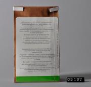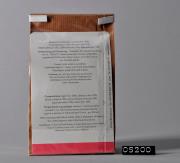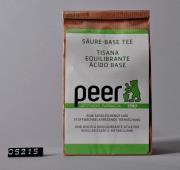 Abstract: Stehbodensack mit Cellophan: brauner 2-lagiger Blockbodenbeutel mit zwei Seitenfalten und einem festen Bodenblatt, bestehend aus braunem, ungebleichtem Kraftpapier und Cellophan (Polypropylen, transparent) für Kräutermischungen. Befüllt mit Säure-Basetee. Zwischen den beiden Lagen des Säckchens: auf der Vorderseite eingeschobenes Etikett mit Produktnamen, Verwendung, sowie Logo der Peer-Apotheken Brixen und Lana, auf der Rückseite Einschub mit Zusammensetzung, Gebrauchsanleitung und Warnhinweisen. Mündung gefalzt und verschlossen mit einem ca 11 cm langen Verschlussstreifen aus weißem, mit Draht verstärktem Papier. Am Boden selbstklebendes Schild mit Herstellungsdatum, Chargennummer, Aufbrauchfrist, Preis und Barcode.