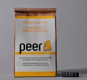 Abstract: Stehbodensack mit Cellophan: brauner 2-lagiger Blockbodenbeutel mit zwei Seitenfalten und einem festen Bodenblatt, bestehend aus braunem, ungebleichtem Kraftpapier und Cellophan (Polypropylen, transparent) für Kräutermischungen. Befüllt mit Abführtee. Zwischen den beiden Lagen des Säckchens: auf der Vorderseite eingeschobenes Etikett mit Produktnamen, Verwendung, sowie Logo der Peer-Apotheken Brixen und Lana, auf der Rückseite Einschub mit Zusammensetzung, Gebrauchsanleitung und Warnhinweisen. Mündung gefalzt und verschlossen mit einem ca 11 cm langen Verschlussstreifen aus weißem, mit Draht verstärktem Papier. Am Boden selbstklebendes Schild mit Herstellungsdatum, Chargennummer, Aufbrauchfrist, Preis und Barcode.