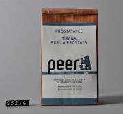 Abstract: Stehbodensack mit Cellophan: brauner 2-lagiger Blockbodenbeutel mit zwei Seitenfalten und einem festen Bodenblatt, bestehend aus braunem, ungebleichtem Kraftpapier und Cellophan (Polypropylen, transparent) für Kräutermischungen. Befüllt mit Prostatatee. Zwischen den beiden Lagen des Säckchens: auf der Vorderseite eingeschobenes Etikett mit Produktnamen, Verwendung, sowie Logo der Peer-Apotheken Brixen und Lana, auf der Rückseite Einschub mit Zusammensetzung, Gebrauchsanleitung und Warnhinweisen. Mündung gefalzt und verschlossen mit einem ca 11 cm langen Verschlussstreifen aus weißem, mit Draht verstärktem Papier. Am Boden selbstklebendes Schild mit Herstellungsdatum, Chargennummer, Aufbrauchfrist, Preis und Barcode.