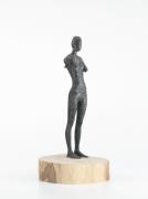 Abstract: Scultura di figura femminile senza braccia in legno carbonizzato su piedistallo di legno. Sul fondo del piedistallo firma e data con matita: "Aron Demetz - bozz. 4 - 2012".