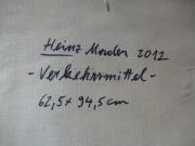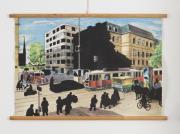 Abstract: Dal progetto "retuschieren" (ritoccare). Tabellone didattico di una strada in metropoli con diversi edifici, persone e vetture, in parte ridipinte dall'artista con inchiostro di china nera. Sul retro in basso firma, data e didascalia con china: "Heinz Mader 2012 - Verkehrsmittel - 62,5 x 94,5 cm".