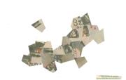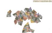 Abstract: Serie composta da 6 collage di carta da giornale (quotidiano in lingua francese) su cartoncino bianco. Al centro di ciascun'opera una composizione di ritagli di immagini; lungo i bordi dei ritagli di testi di giornale.