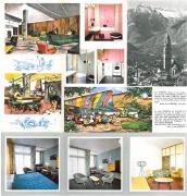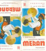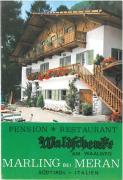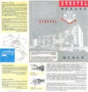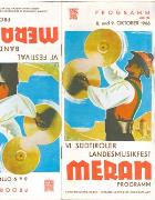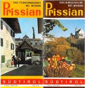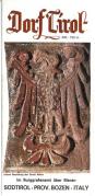 Opuscolo pubblicitario inerente il comune di "Dorf Tirol - Tirolo paese" contenente varie illustrazioni fotografiche colorate (da sud verso nord: chiesa, vecchio cortile, cappella, vecchia casa contadina con persone in tipico costume tradizionale, Castel Tirolo, piscina pubblica, Passeggiata H. Falkner, funivia Alta Muta, sciatori, chiesetta S. Pietro, chiesetta di S. Ruperto, Castel S. Zeno, Minigolf, Passeggiata Tappeiner, processione Corpus Domini, banda musicale, Sentiero Vellauer Felsenweg, Laghi di Sopranes, Piramidi di Terra, chiesa parrocchiale, cappella del castello, portale della cappella di Castel Tirolo, etc.). Cartina panoramica di Stampfl. Temi fotografici di copertina: (fr./r. > Castel Tirolo - Antica rappresentazione in pietra dell'aquila tirolese.