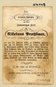 Abstract: Sterbebild von Nikolaus Prossliner, Priester in Kaltern Geb. am 13.02.1803 in Kastelruth, gest. am 19.02.1852 in Trient ohne Foto