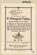Abstract: Sterbebild von P. Peregrin Talloy, Kapuziner-Ordenspriester u. Prediger Geb. am 12.04.1810 in Bozen, gest. am 04.02.1869 in Meran ohne Foto