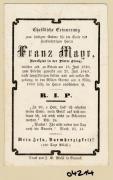 Abstract: Sterbebild von Franz Mayr, Benefiziat in der Pfarre Olang Geb. am 16.07.1823 in Brixen, gest. am 03.03.1869 ohne Foto