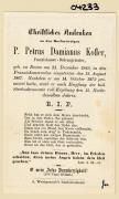 Abstract: Sterbebild von P. Petrus Damianus Kofler, Franziskaner-Ordenspriester Geb. am 31.12.1849 in Bozen, gest. am 15.11.1872 ohne Foto