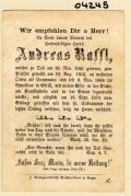Abstract: Sterbebild von Andreas Raffl, Priester Geb. am 16.11.1821 in Tall, gest. am 16.09.1874 ohne Foto