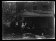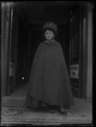 Abstract: Ripresa in esterno. Ritratto di una bambina davanti all'ingresso dello studio fotografico Waldmüller