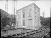 Abstract: Ripresa in esterno. Centrale elettrica, due piloni di alta tensione