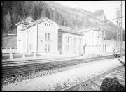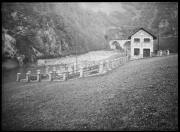 Abstract: Ripresa in esterno. Ruscello, ponte, casa con giardino, galleria, pilone di alta tension