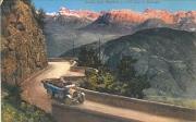 Abstract: Cartolina illustrata con grafica a colori raffigurante la strada della Mendola m. 1375 verso le Dolomiti; un auto d'epoca transita sulla carreggiata con quattro persone a bordo. Sullo sfondo, le Dolomiti. (Nr. di serie 517-28).