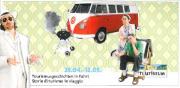Abstract: Volantino inerente il teatro di strada: "Storie di turismo in viaggio" - dal 25.04. - 12.05.2013, in occasione del 10° anniversario del Museo provinciale del turismo - Touriseum. Tre attori, Kiki Rochelt, Peter Schorn e Gerd Weigel, percorrono l'Alto Adige, a bordo di un vecchio autobus rosso VW, narrando la storia del turismo altoatesino sulle strade e nelle piazze. Motivo: bus VW rosso.