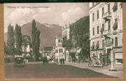 Abstract: Meran - Blick vom Sandplatz gegen die Freiheitsstraße. Rechts das Hotel Atlantik, vormals Esplanade