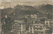 Abstract: Meran - Obermais gegen den Küchelberg. Im Vordergrund die Pensionen Niedl und Tannheim