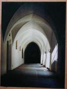Abstract: Farbfoto - Meran : Innenansicht - Bogengänge mit Fresken im ehemaligen Klarissenkloster, heute Volksbank - Gebäude, Kornplatz.
