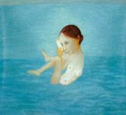 Abstract: Probabilmente un autoritratto dell’artista: Al centro in uno sfondo azzurro c’è un corpo femminile frammentato con arti in pose diverse. I gesti isterici esprimono la fuga della psiche in mondi interiori sicuri. Fulcro del lavoro è il contrasto tra l’autopercezione del corpo femminile e l’immagine del corpo quale rappresentazione della femminilità.