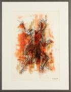 Abstract: Una figura femminile svanisce dietro linee rosse e gialle. In questo dipinto, fatto durante l’ultimo periodo di attività, Josef Kostner si dimostra più forte ed espressivo.