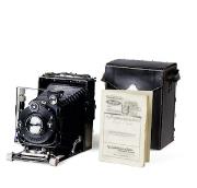 Abstract: Fotocamera a pannelli Voigtländer, mod. "Bergheil", 9 x 12. Produttore Voigtländer & Sohn Aktiengesellschaft/Soc. per Azioni. Lavori ottici e meccanici di precisione. Con istruzioni d'uso e custodia in pelle.