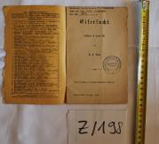 Abstract: Verlag: Ferdinand Schönigh Druck: Ferdinand Schönigh Auflage: keine Angabe Theaterstück Auf dem Umschlag "Dilettannten-Theater. Neue Folge. 18. Sammlung leicht ausführbarer Theaterstücke mit gemischten Rollen. Eifersucht. Lustspiel in einem Akt von A. F. Roth. Paderborn. Druck und Verlag von Ferdinand Schönigh. Preis 30 Pfg." Schwarz/weiß gedruckt, gotische Buchstaben. Deckel aus gelbem Papier, Vorderseite bedruckt wie oben beschrieben.