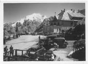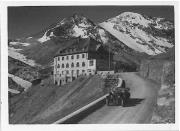 Abstract: Nr. 12 fotografie b/n (piccolo formato) inerenti lo Stelvio e raffiguranti le seguenti immagini: strada del passo, albergo "Passo allo Stelvio" (ex Ferdinandshöhe) con auto parcheggiate di fronte, panorama montano, Hotel Stilfserjoch con Cima delle tre lingue e hotel (rifugio (?) n. 3), Rifugio Livrio (n. 10); in copertina cartonata marrone - di Leo Bähhrendt. Timbrata "Passo dello Stelvio 28. Jul. 32".
