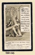 Abstract: Verlag: Benziger, Einsiedeln. Druck auf Papier, schwarz/grau, gestanzter und geprägter Rand. Herz Jesu Darstellung, mit Kreuz und Blumen (Rosenzweig). Text: "Die größte Liebe glüht in Jesu Herzen, / für uns ertrug Er alle seine Schmerzen."