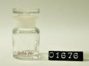 Abstract: Rundes Pulverglas aus farblosem Glas mit Schliffstopfen (Massivstopfen). Verdickter, flacher Mündungsrand.