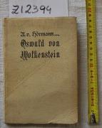 Abstract: Verlag: L. Ehlermann Druck: Johann Päßler Auflage: keine Angabe Auf dem Titelblatt "Oswald von Wolkenstein. Erzählendes Gedicht von Angelica von Hörmann. Dresden. Verlag von L. Ehlermann." Auf der ersten Seite ein Stempel "Bücherei Sdr. Rudolf Marsoner" Schwarz/weiß gedruckt, gotische Buchstaben. Deckel in weißem Leineneinband, schwarz bedruckt.