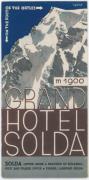 Abstract: 1 Faltrospekt, 2farbig, blau + braungetönte Abb., 3teilig, engl. Sprache, Sulden, Grandhotel, mit sw Innen- und Außenansichten. Motiv: grafishce Darstellung des Ortler von Merlet