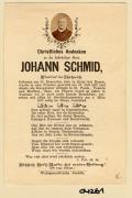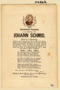 Abstract: Sterbebild von Johann Schmid, Pfarrrer in Tschars Geb. am 30.12.1803 in Gries bei Bozen, gest. am 06.03.1877 mit Foto