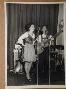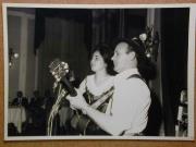 Abstract: Foto schwarz/weiß : Autosternfahrt ' Meraner Frühling ' . Die Sängerin und der Trompeter der Band bei der Preisverleihung.