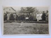 Abstract: Postkarte - Marling - Grundsteinlegung - Kronprinz Umberto und Fürstbischof Endrici aus Trient besuchen den Platz auf welchem das Elektrizitäts- Werk entstehen soll