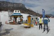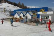 Abstract: Talstation des Sesselliftes "Doninz" in La Villa/Stern mit Skifahrern