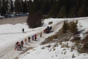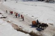 Abstract: Pferdeschlitten mit Skifahrern im Schlepptau entlang des Gaderbaches
