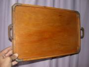 Abstract: Schmales, sehr dünnes Holztablett mit 2 Metallhenkeln.