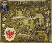 Abstract: 3 Autoplaketten '19. Foto- Such- und Quizfahrt quer durch Südtirol' von 1988. Motiv: Schloß Vorst. Mit Plakette des ADAC und Wappen.