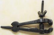 Abstract: Einfache Tiegelzange (Bauchzange) zum Fassen von Schmelztiegeln und ähnlich geformten Gegenständen benutzt wird. Die greifenden Teile an den Vorderenden sind halbkreisförmig geformt, sobei ein Ende zur Öffnung hin gezahnt ist