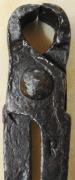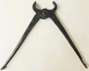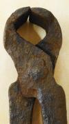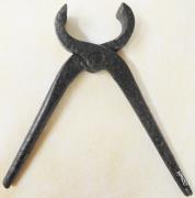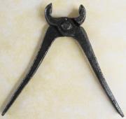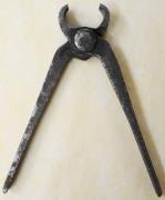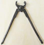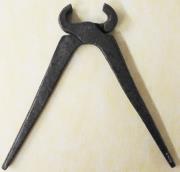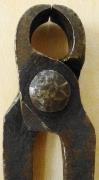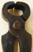 Abstract: Kneifzange mit zwei keilförmigen Schneiden. Auf den Schenkeln ist ein "P" graviert. Die Griffenden erinnern an Hacken (bessere Handhabung?). Die Kneif- oder auch Beißzange dient zum Herausziehen von Nägeln und zum Abkneifen von Draht oder dünnen Metallstiften