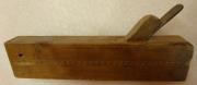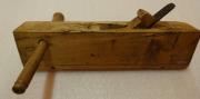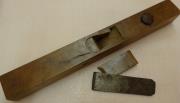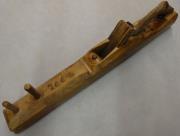Abstract: Schlichthobel mit einem gespaltenen Hobeleisen versehen. Das Doppeleisen bildet kurz hinter der Schneide eine Kante an der der Span gebrochen wird, so dass eine glattere Oberfläche erzielt wird. Zwei unterschiedlich lange und gedrechselte Griffe. Der Hobel ist auf der Oberseite verziert. Das Hobeleisen ist mit einem Holzkeil fixiert, von diesem ist ein Stück abgebrochen.