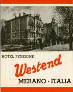 Abstract: Opuscolo alberghiero: "Hotel Pensione Westend Merano . Italia". Notizie informative (incluse immagini e raffigurazioni grafiche) e suggerimenti, sono riportati nel contenuto interno.