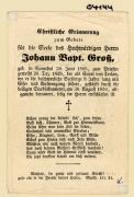 Abstract: Sterbebild von Johann Bapt. Gross, Kurat von Terlan Geb. am 30.06.1805 in Sarntal, gest. am 30.08.1850 ohne Foto