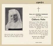 Abstract: Sterbebild von Odilonis Hofer, Barmherzige Schwester Geb. am 08.02.1892 in St. Lorenzen, gest. am 13.05.1968 in Gries mit Foto