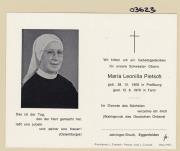 Abstract: Sterbebild von Schwester Oberin Maria Leonilla Pietsch Geb. am 28.12.1909 in Preßburg, gest. am 12.08.1979 in Tann mit Foto