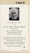Abstract: Sterbebild von Sr. M. Beatrix Theresia Bulasch, Lehrerin a.D. Geb. am 16.06.1898 in Rosenberg, gest. am 23.01.1985 in Passau mit Foto