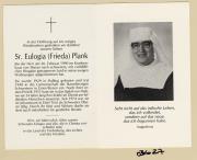 Abstract: Sterbebild von Sr. Eulogie (Frieda) Plank, Barmherzige Schwester Geb. 1929 in Hafling, Gest. am 26.02.1990 in Meran mit Foto