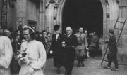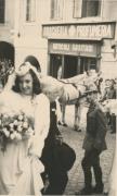 Abstract: Meran - Hochzeit von Margherita Kebat und Mario Ghibaudi. Leopoldine und Ludwig Kebat beim Verlassen der St. Nikolaus- Pfarrkirche