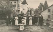 Abstract: Meran - Hochzeit von Margherita Kebat und Mario Ghibaudi. Die Hochzeitsgesellschaft im Garten des Esplanade