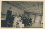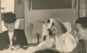 Abstract: Meran - Hochzeit von Margherita Kebat und Mario Ghibaudi. Das Brautpaar beim Hochzeitsessen im Esplanade. Li. Brautmutter Leopoldine