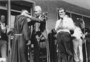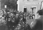 Abstract: Meran - Obermais - Kirchsteig - Einweihung des Pfarrzentrums Rebhof (Pfarre, Villa). Unter den Gästen u.a. Pfarrgemeindepräsident Dr. Walter Egger u. Hans Torggler. Am Mikrofon BM Franz Alber